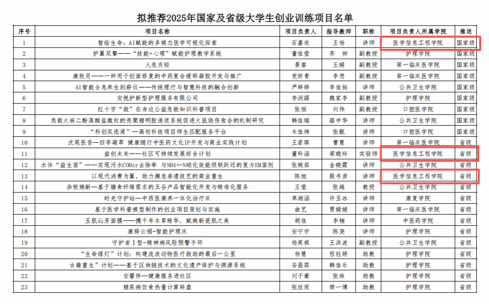 在高层次立项中,才千惠同学团队的《新型缉毒动物训练体系的仪器化构建与创新实践》项目脱颖而出,获国家级立项。该项目由黄和教授指导,聚焦缉毒动物训练的仪器化升级,将技术创新与社会需求深度结合,具有重要的实际应用价值。宋晓丹同学团队申报的《沈阳市老年人幸福感调研研究及提升策略》项目获批国家级立项,由刘洪教授担任指导,聚焦人口老龄化背景下沈阳本地老年人生活质量核心议题,通过科学调研与数据分析,为提升区域老年群体幸福感提供实践参考。石嘉欣同学团队申报的《智绘生命:AI 赋能的多模态医学可视化探索》项目获国家级立项,由王杨老师全程指导,聚焦医学影像领域的可视化技术创新,为临床诊断与医学教学提供全新解决方案。