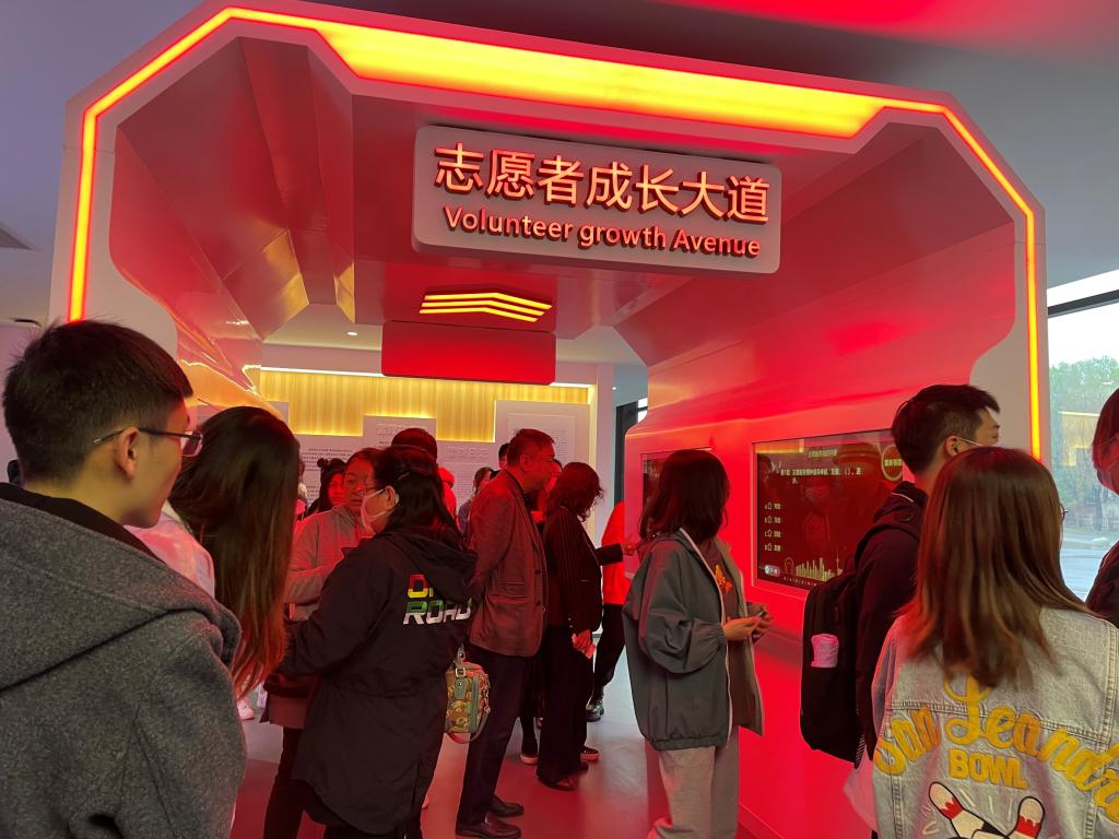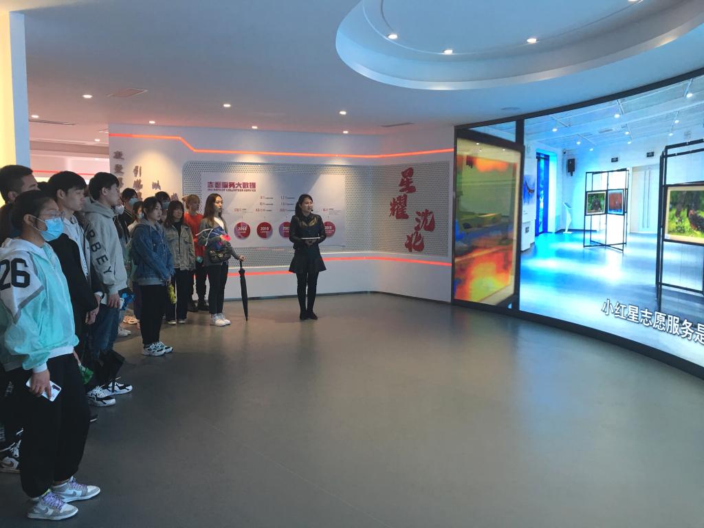 随后,全体师生参观了实践中心,该中心总面积1.2万多平方米,分为两层结构:一层设志愿者服务站、学雷锋工作室、传习中心、初心讲堂等功能区,二层设非遗文化展示、安全警示教育展厅以及群众文化活动等功能区。