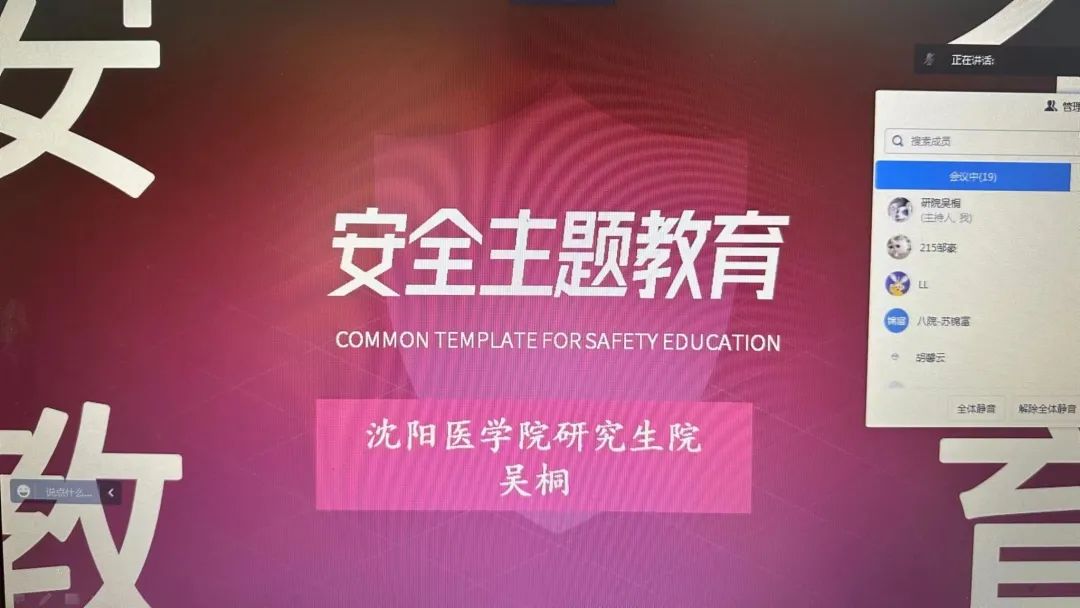 5月8日上午,研究生院针对校园安全问题开展了线上安全主题教育活动。活动中,向同学们普及了消防安全知识,具体分析了常见的安全隐患,同时详细讲解了火灾现场逃生措施等相关内容,并叮嘱校内及校外住宿同学注重人身安全、用电安全,始终牢记安全无小事,筑牢校园安全及消防安全意识。