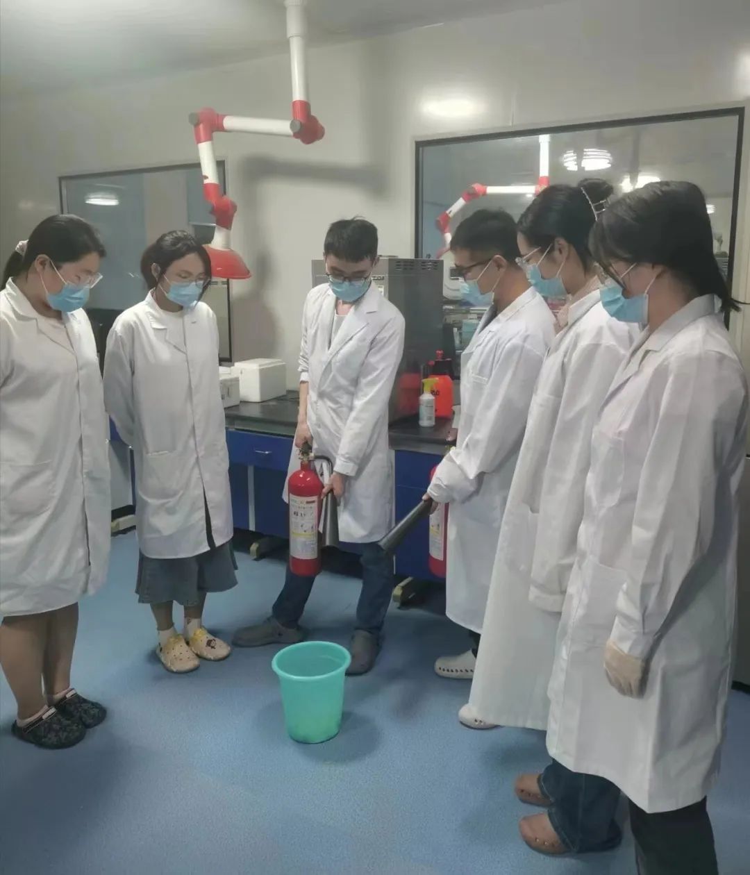 4月27日,研究生院组织开展实验室安全教育和消防演练活动,通过实战化的培训让每名同学体验实际操作,掌握灭火器的正确使用方法,并通过简化口诀“提拔握”即提起灭火器、拔掉保险销、握紧喷管开关便于同学们记忆掌握,进一步加强研究生的应急处置能力。
