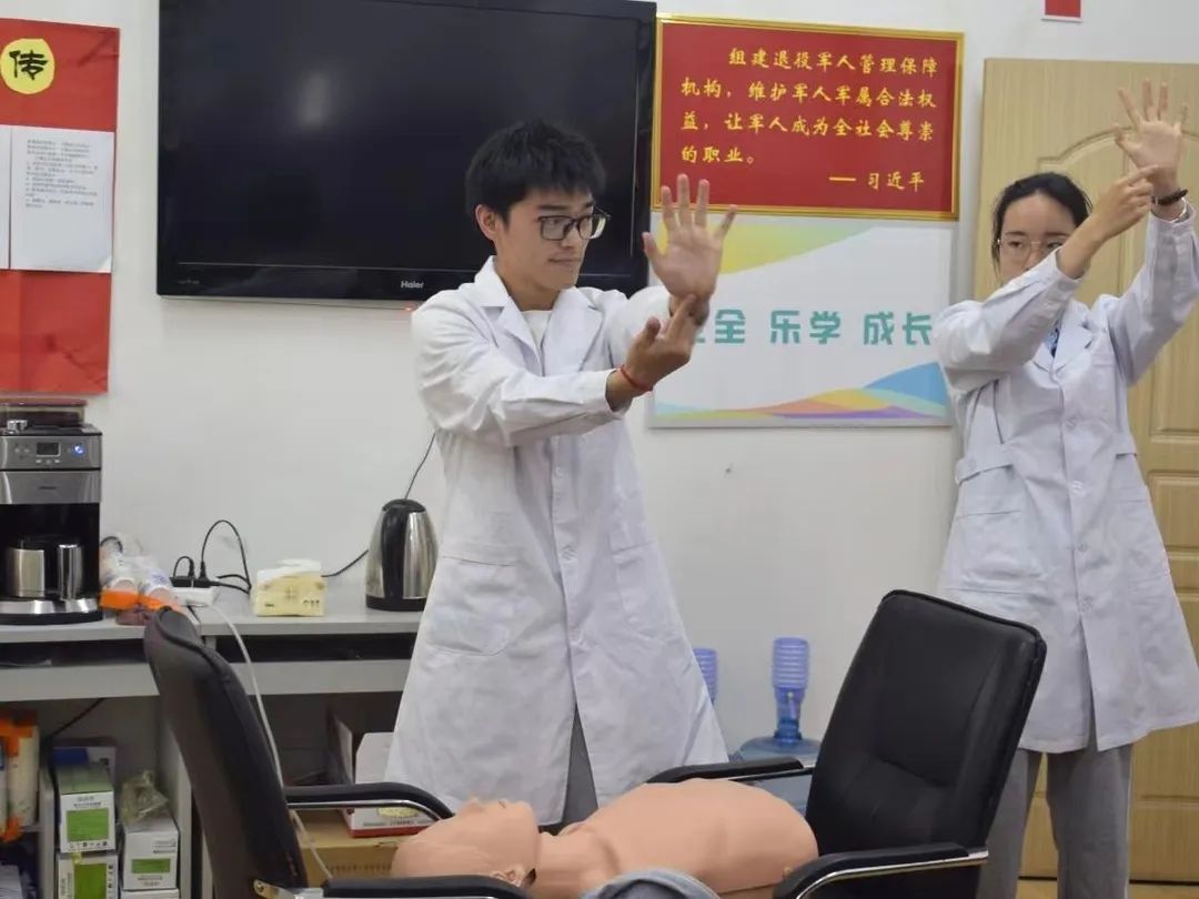活动现场,2020级临床医学高嘉怡同学担任主讲讲师,与2020级临床医学张尚杰、2021级口腔医学张恒、2020级临床医学金鹏、2020级麻醉学王鑫蕾等同学给社区居民们进行急救知识科普讲座,重点科普了异物卡喉海姆立克急救法、心肺复苏的操作方法、脑卒中的预防和发现,并结合日常生活深入浅出的介绍了烧、烫伤和突发胸痛等处理方法,使居民对常见疾病有了正确的认识了解和处置能力。活动中,居民们认真听讲,在最后的分享与讨论环节,大家踊跃提问、积极互动,现场气氛十分热烈。