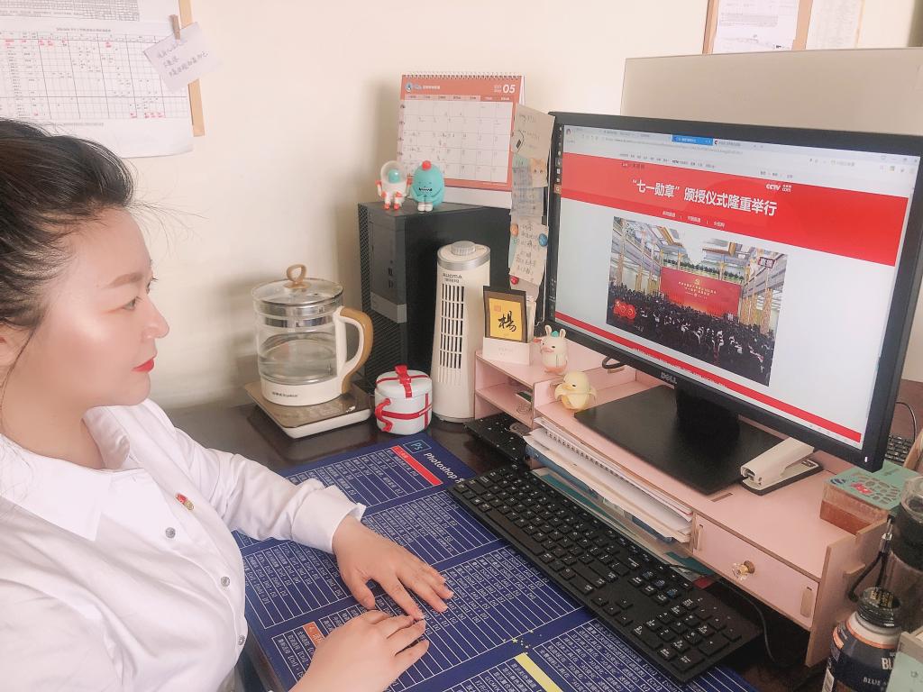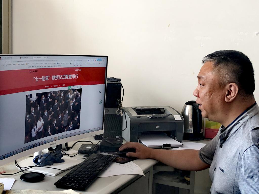 庆祝中国共产党成立100周年“七一勋章”颁授仪式6月29日上午在北京人民大会堂隆重举行。中共中央总书记、国家主席、中央军委主席习近平向“七一勋章”获得者颁授勋章并发表重要讲话。beats365官方网站党总支部组织师生通过电脑、手机等,认真收看收听仪式直播,深刻领会习近平总书记重要讲话精神,学习29位“七一勋章”获得者的先进事迹,并畅谈感想体会。