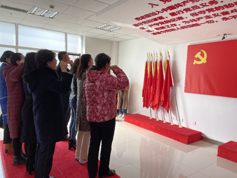 皇姑区党群活动中心是全国500家红色驿站之一,活动中心集党建服务、党建活动等多功能于一体,展厅内容丰富、设施健全。其中“党员正身室”,通过“看、学、感、论、做”五步法进行,体验多媒体互动,激发党员身份意识、责任意识,提升党员组织生活质量,并以此告诫党员:要端正自己的思想言行,时刻保持党员的先进性。在讲解员的带领下,党员教师及员工入党积极分子认真参观了活动中心的党建空间,深入学习了党在各个历史时期创造的理论成果、积累的宝贵经验和铸就的伟大精神,回顾了我们党团结带领中国人民不懈奋斗的光辉历程。最后,全体党员站在宣誓台上重温入党誓词,集中宣誓。