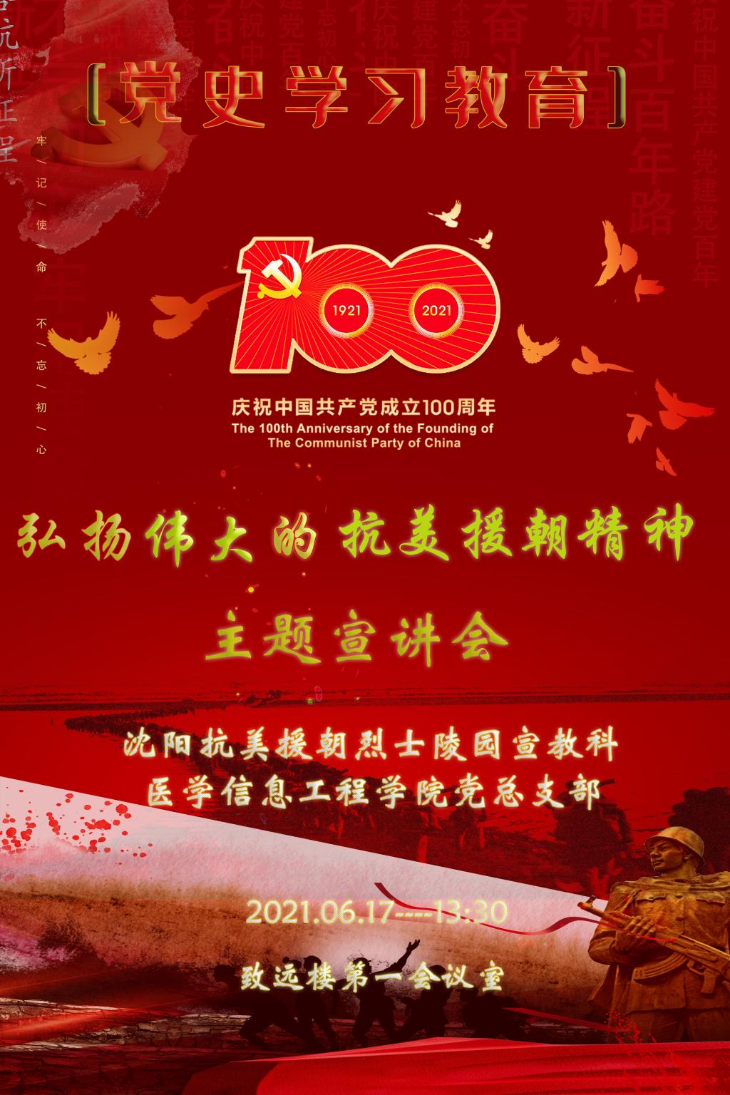 为迎接建党100周年,推动党史学习教育持续走深走实,发掘红色资源思想内核与时代价值,6月17日下午,beats365官方网站党总支和沈阳抗美援朝烈士陵园联合举办了“弘扬伟大的抗美援朝精神”主题宣讲会。beats365官方网站全体师生参加了此次活动。