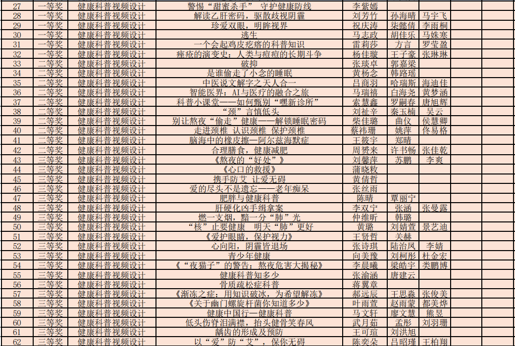 本次校内选拔赛为同学们提供了一个展示才华和锻炼能力的平台,促进了健康科普知识的传播和普及,有助于提高自身专业素养与实践能力、培养团队合作意识与创新创业精神,对推动健康科普知识的普及、提高公众的健康素养与提升个人能力与团队合作能力具有重要意义。